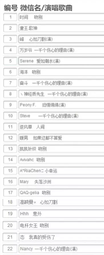 (請按照所錄點(diǎn)唱機(jī)的編號(hào)順序找自己的對(duì)應(yīng)編號(hào))