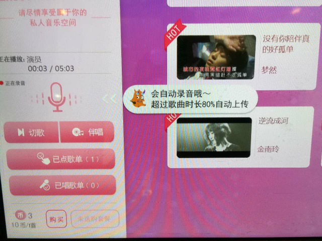 5、 點歌成功,開始演唱!